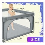 Tarc de joaca pentru copii prevazut cu fereastra de acces cu fermoar, cadru din otel, asamblare simpla, dimensiune 120 x 120 cm Grey