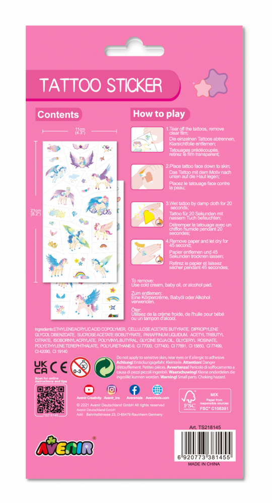 Tatuajul se aplica pe pielea uscata, se umezeste pelicula si se apasa cateva secunde.