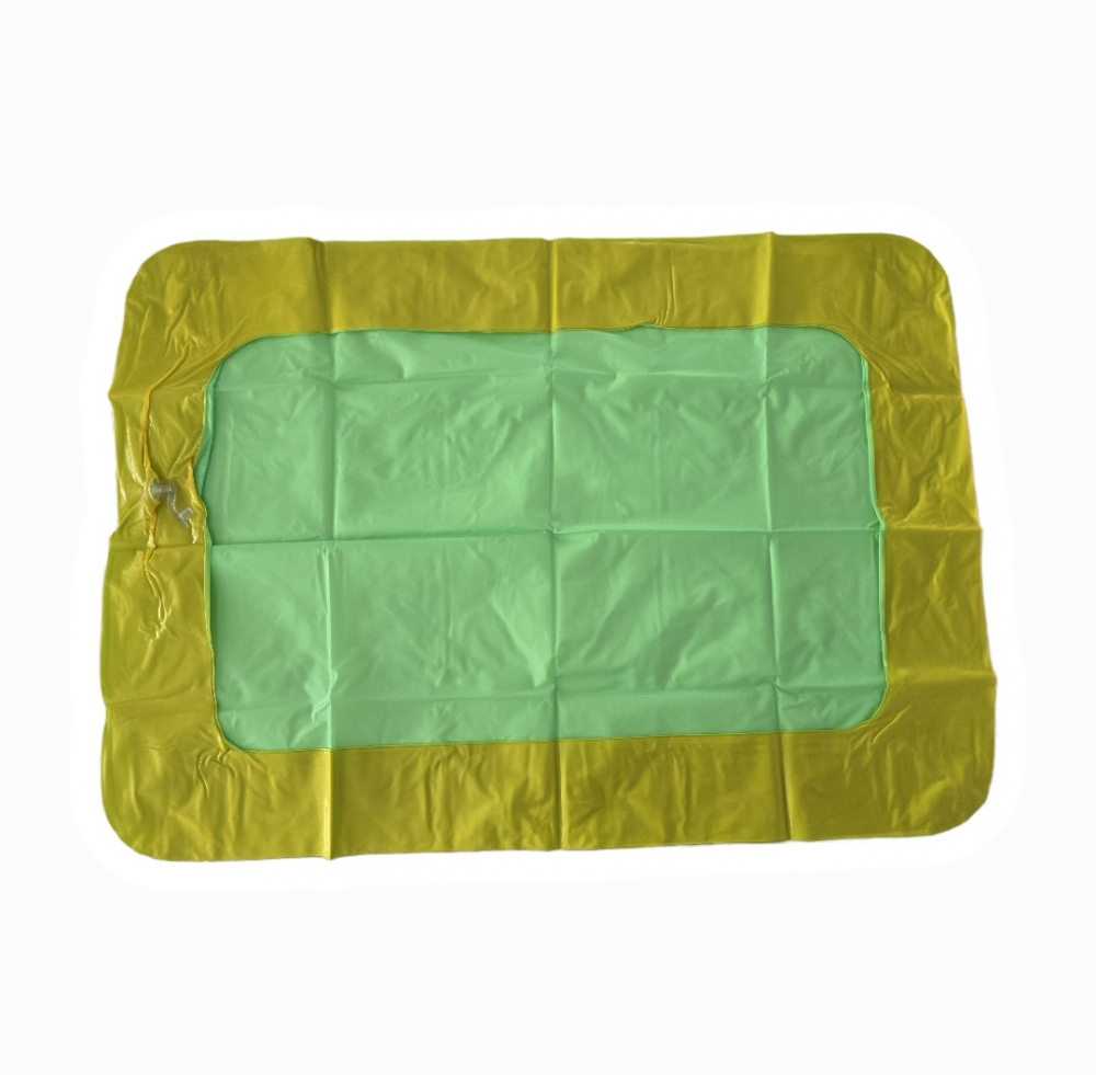 Tavita gonflabila pentru joaca cu nisip kinetic Ikonka, impermeabila, realizata din plastic pvc, dimensiune 56 x 40 cm, yellow/green
