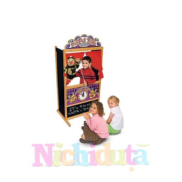 * Acest teatru din lemn pentru papusi este construit pe o baza din lemn rezistenta si are suficient spatiu pentru unul sau doi papusari