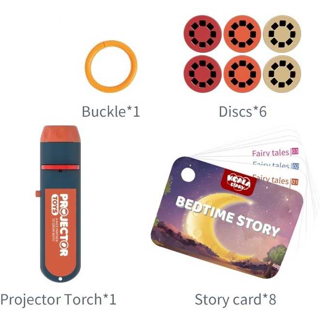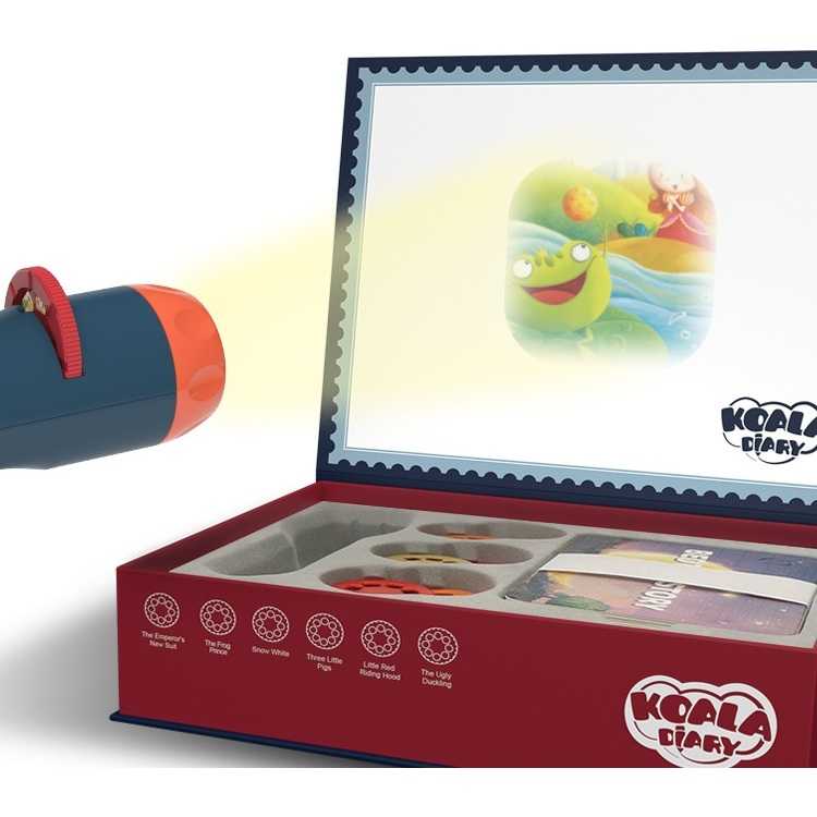 Proiectorul Koala Diary, cardurile cu povesti si diapozitivele sunt ambalate intr-o cutie mica si atractiva, asigurand stocarea in conditii de siguranta si usurand transportul oriunde doreste copilul dumneavoastra.