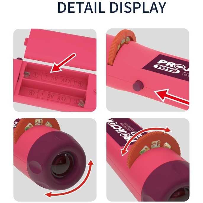 Acest proiector usor de folosit, cu scenele de poveste, ajuta copiii sa-si dezvolte imaginatia, limbajul si atentia.