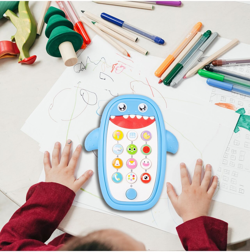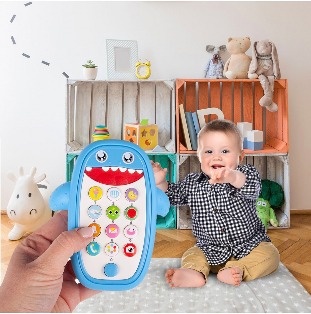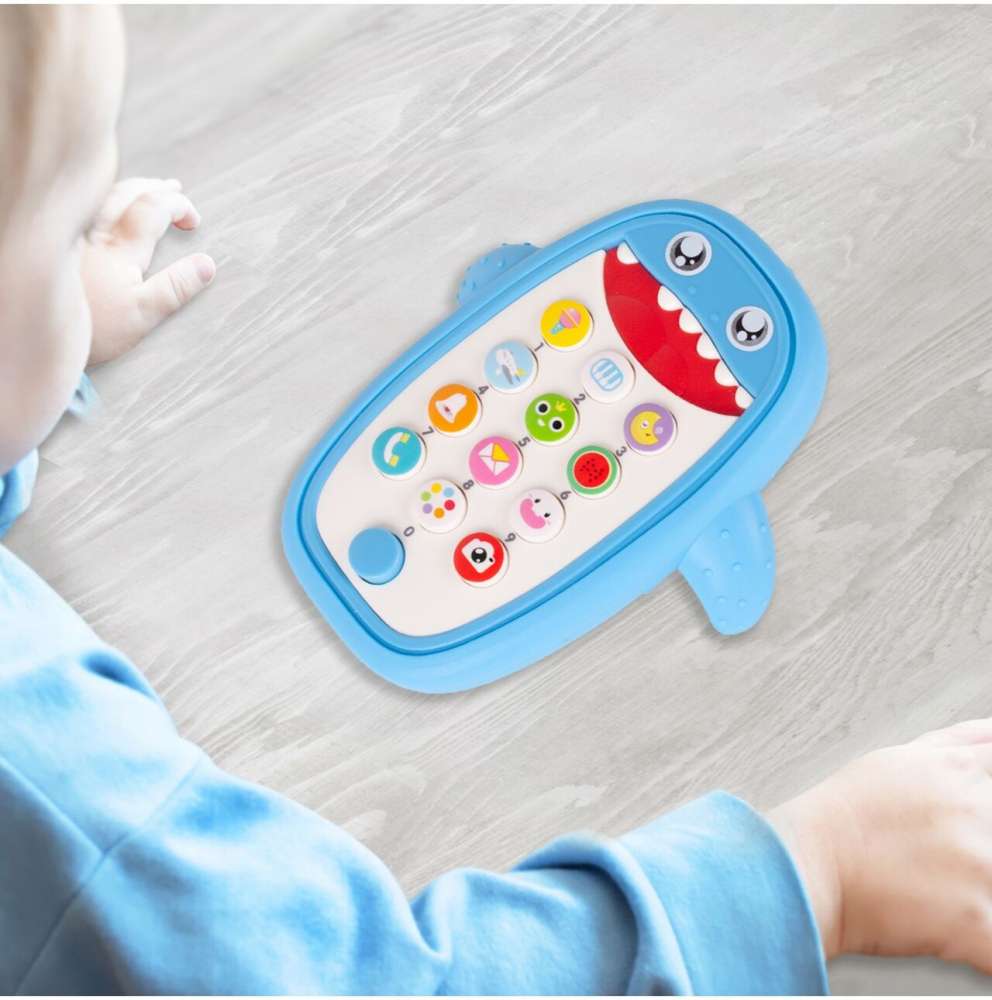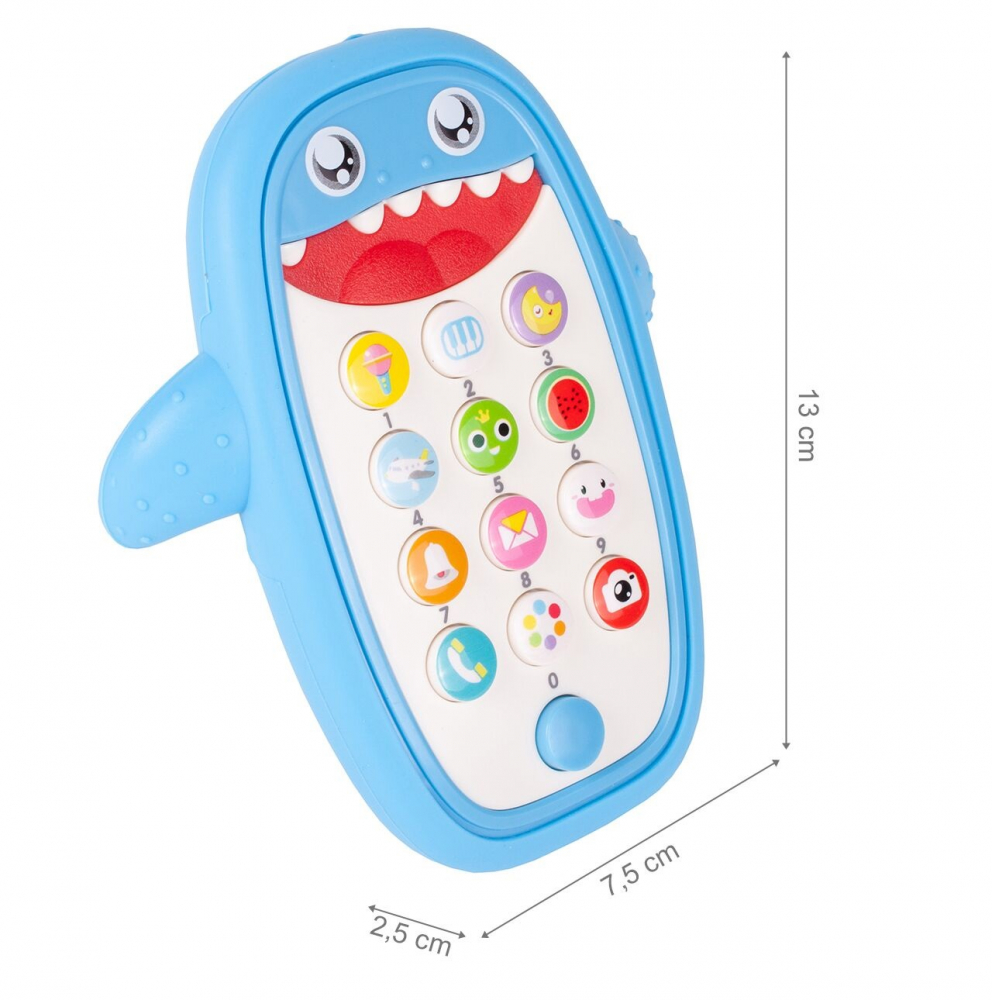Telefon interactiv cu sunete si lumini Shark Baby Blue