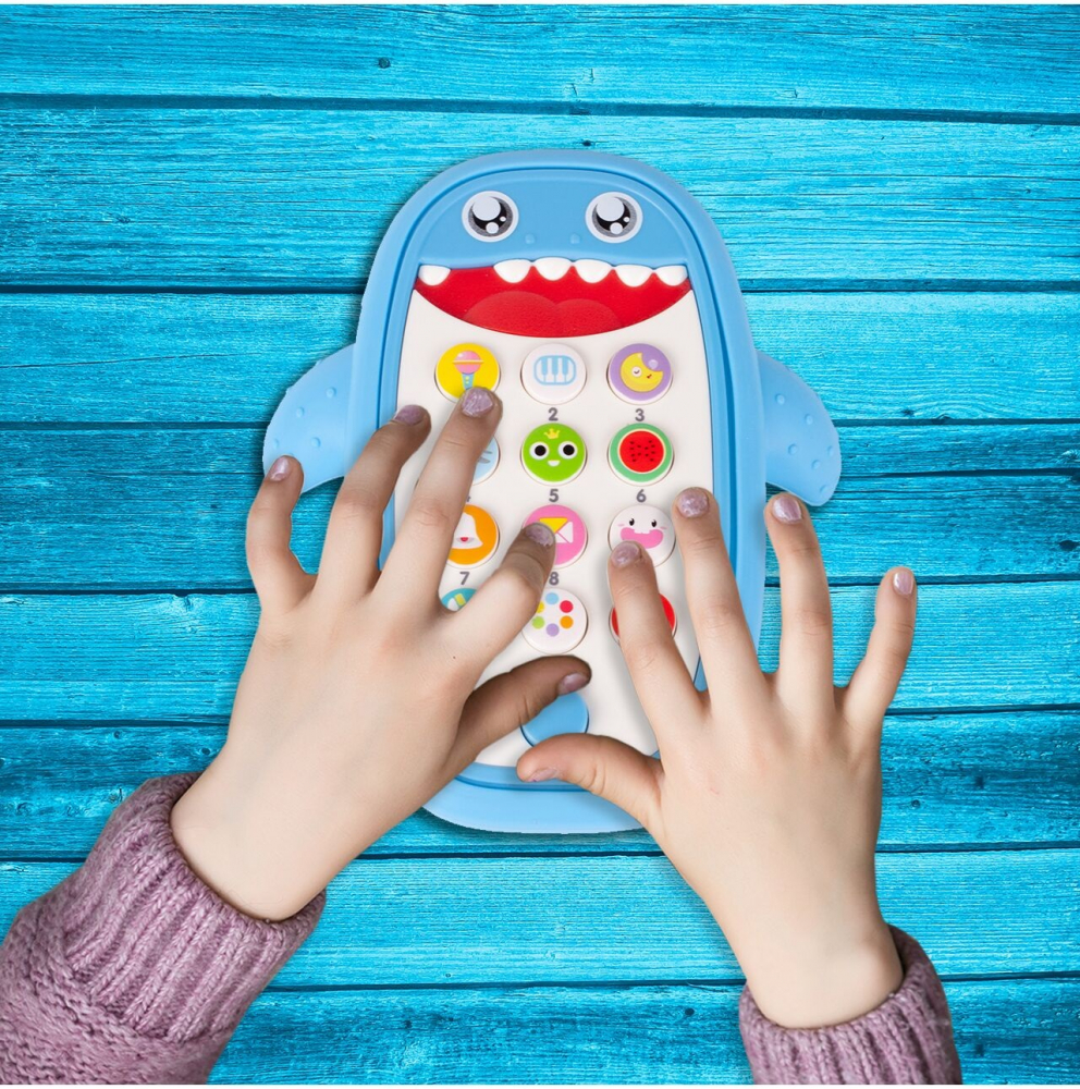 * Este o jucarie colorata Happy Shark, care arata exact ca un adevarat telefon mobil!