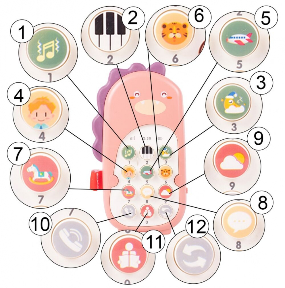 Telefon interactiv pentru copii in forma de Dinozaur Pink