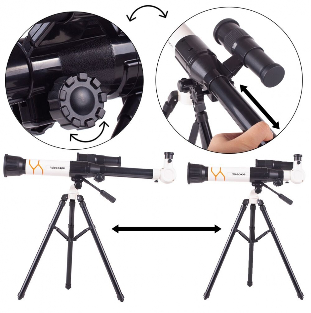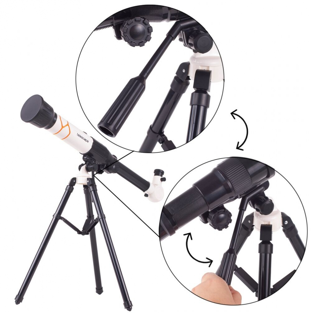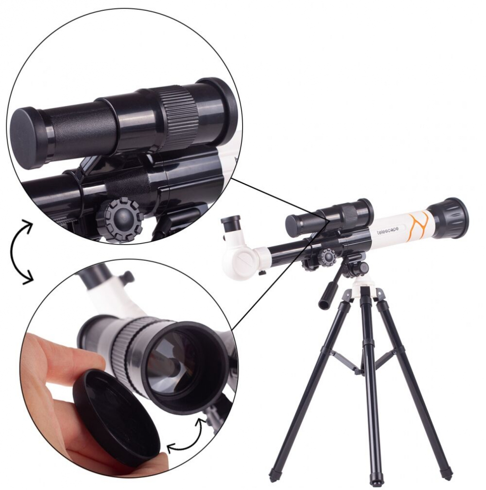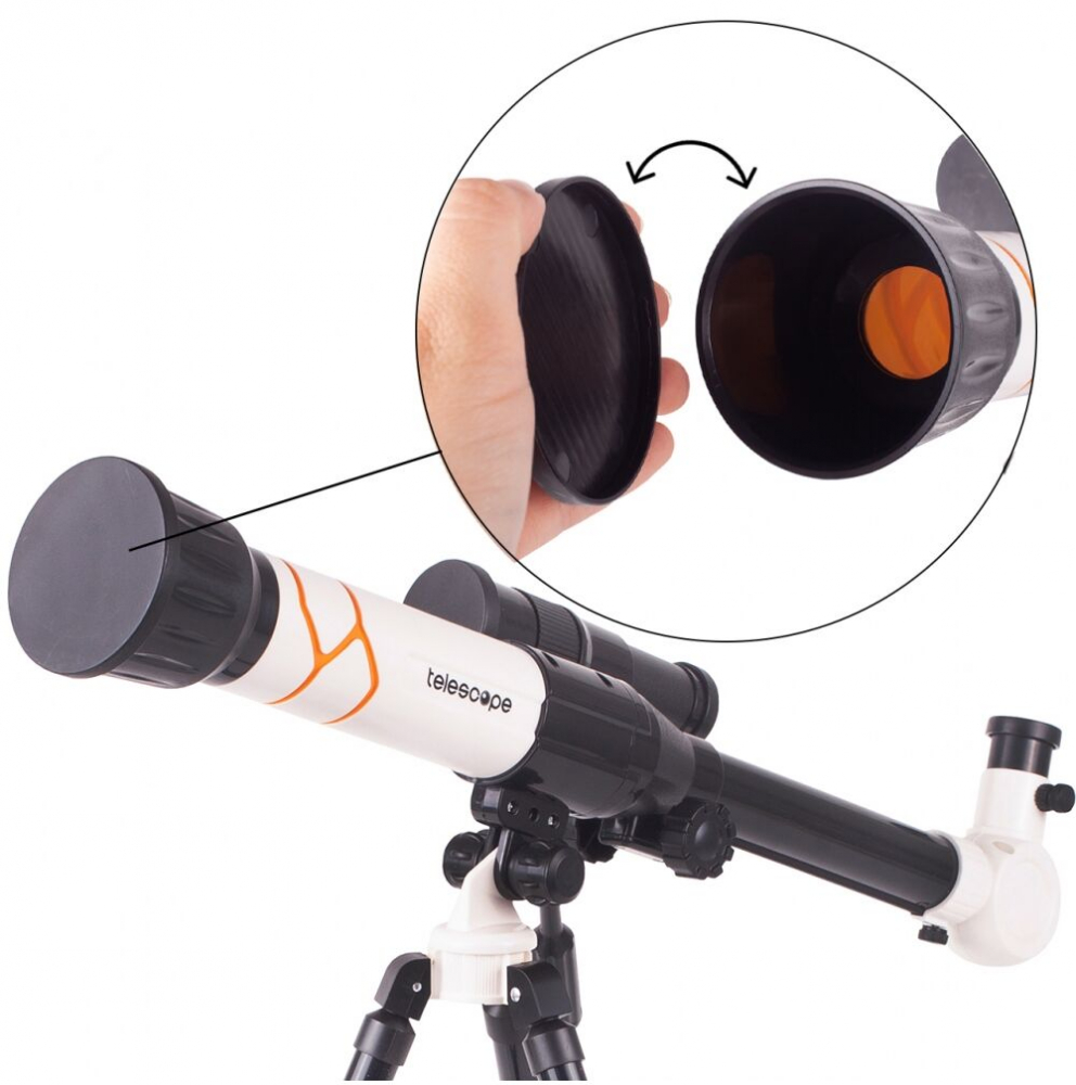 * Capacul exterior montat faciliteaza pastrarea curata a opticii telescopului. Operarea nu necesita cunostinte de optica si astronomie. Setul perfect pentru un mic om de stiinta.
