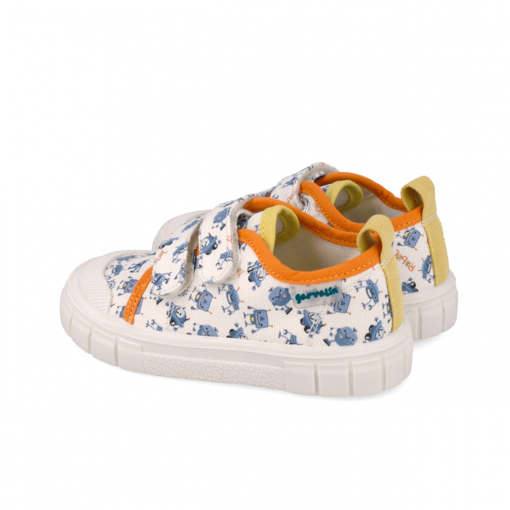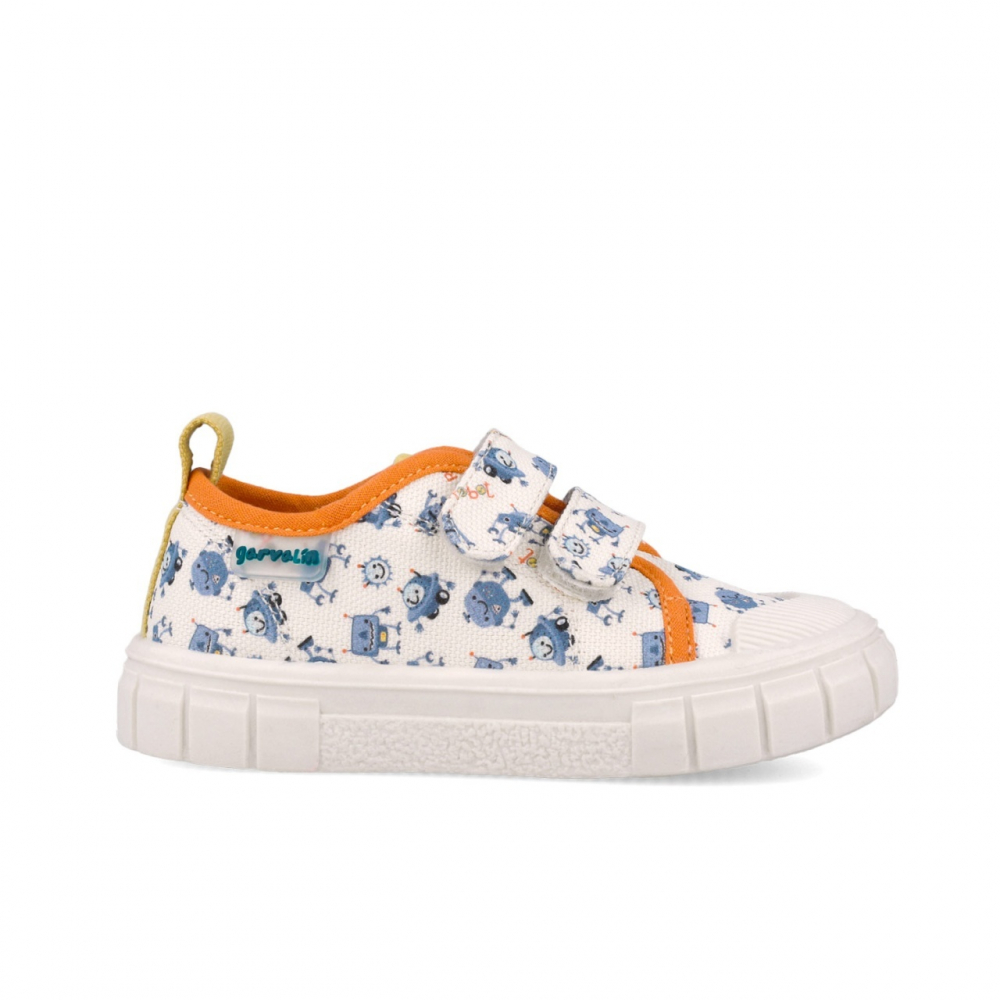Tenisi canvas cu monstruleti pentru copii Garvalin 252382 Albi marime 23 (14,2-14,7 cm)