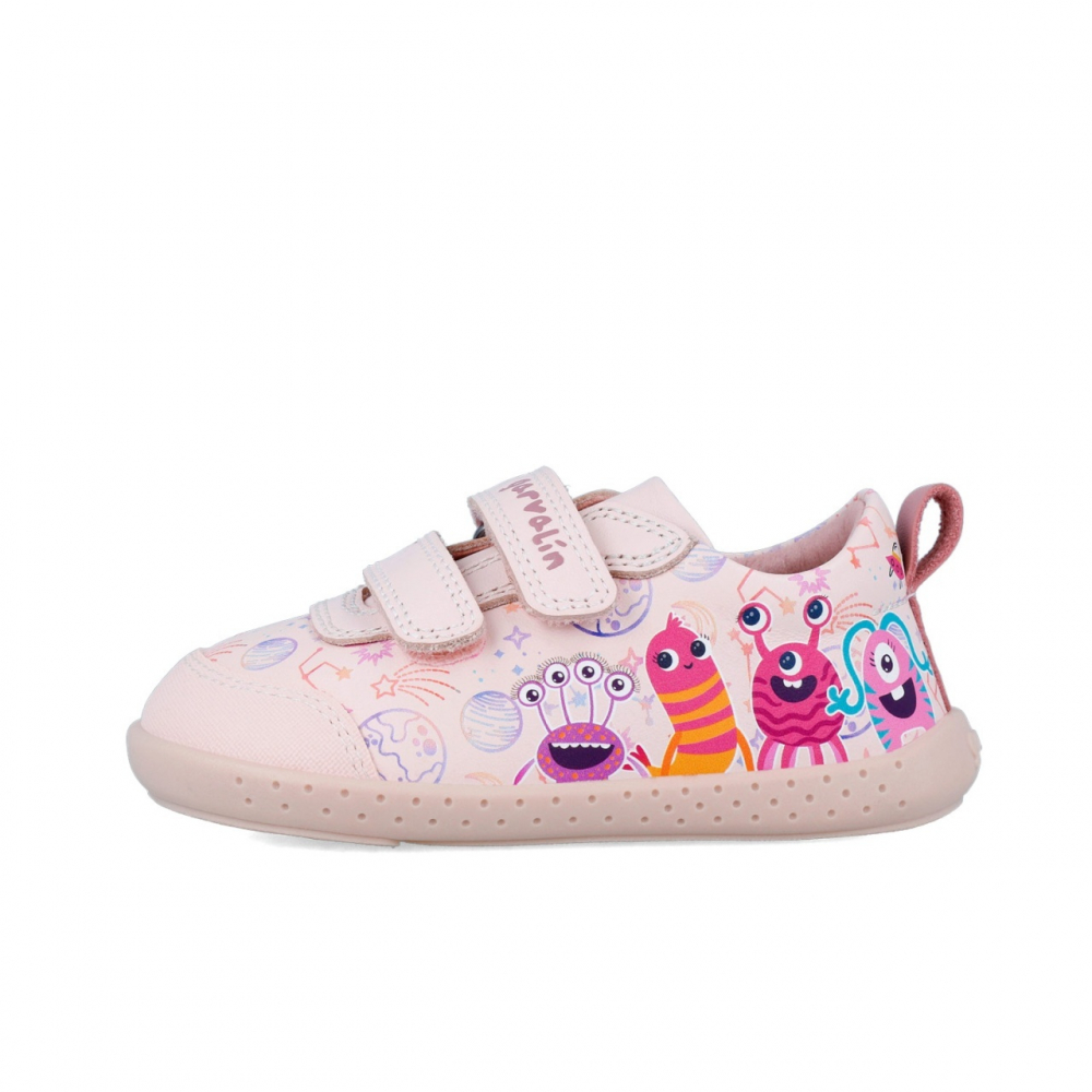 Tenisi din piele pentru copii Garvalin monstruleti roz marime 20