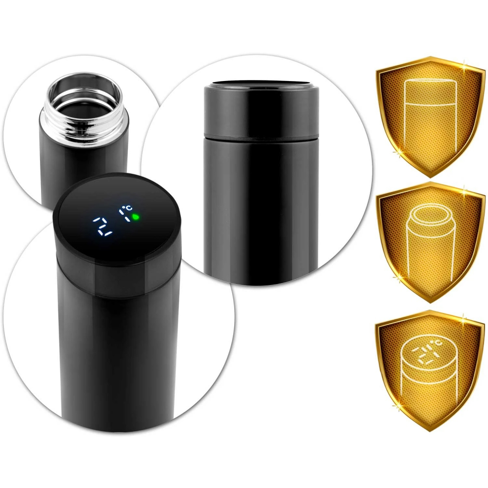 - Perfect pentru persoanele active: Termometru incorporat in capac va va informa despre temperatura bauturii. O singura atingere afiseaza si stii deja daca bautura ta este inca la temperatura perfecta!