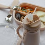 Termosă din oțel inoxidabil cu un capac, ceea ce o face potrivită pentru copii încă de la 6 luni.