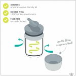 • Capacul se dubleaza ca un castron sau o ceasca de baut si o lingura pliabila se afla depozitata sub capac.