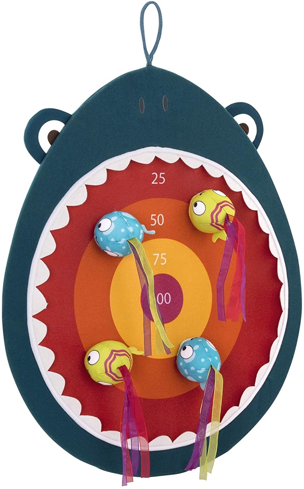 Tinta Rechin B.Toys contine o tabla cu puncte si 4 mingi care se prind cu scai de tabla cand sunt aruncate.