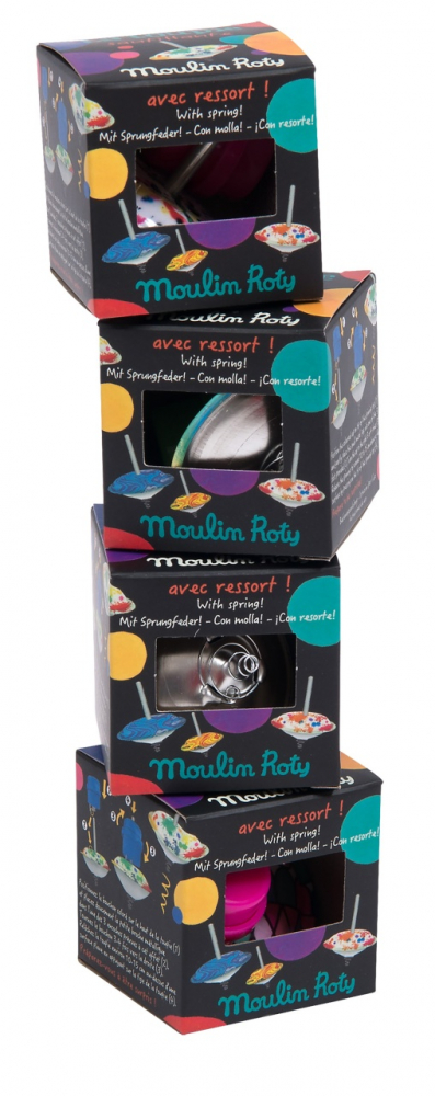 Datorita arcului integrat, titirezul se invarte si sare in același timp! Montati capacul colorat pe partea superioara a rotitei, apoi introduceti delicat parghia metalica intr-una dintre cele 3 crestaturi speciale, rotiti capacul spre dreapta de 3-4 ori, eliberati rotita la aproximativ 10-15 cm de o suprafata plana apasand pe varf. Pregatiti-va sa fiti uimiti!