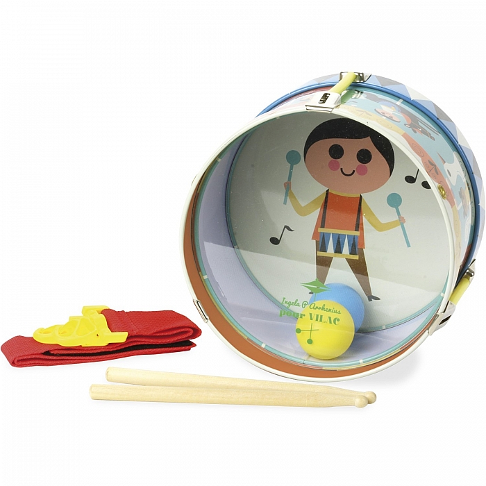 Tambur metalic ilustrat de artista suedeza Ingela P. Arrhenius.