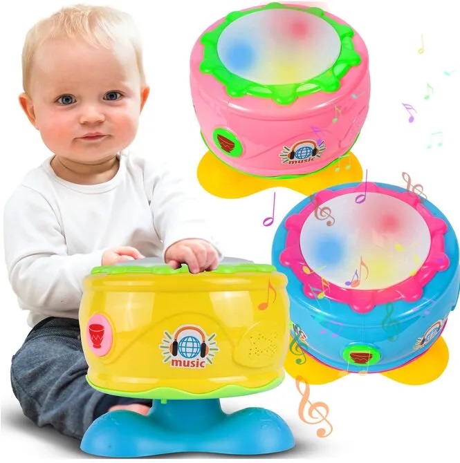 * Jucăria dezvoltă mintea și perceptivitatea copilului. După lovirea tobei, copilul va auzi o melodie și LED-urile din interiorul tobei se vor aprinde alternativ, dând un efect frumos.