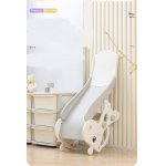 Tobogan pentru copii Nichiduta Garden Deer Blue, de interior/exterior, prevazut cu mini-cos de Baschet, scara, manere de sustinere, design pliabil, dimensiune 38 x 115 x 55 cm