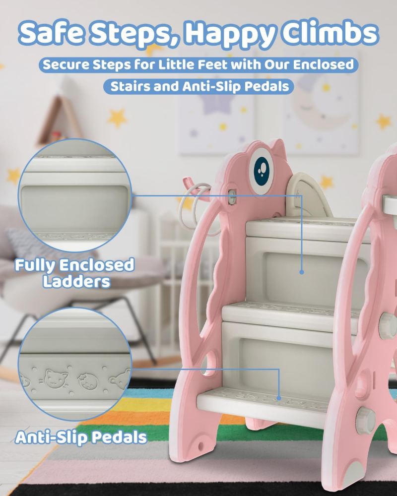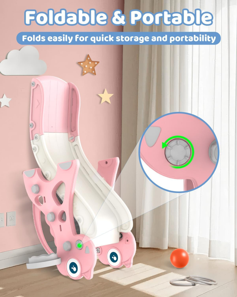 - Pliabil: toboganul se pliaza usor pentru a fi depozitat si transportat, economisind spatiu.