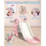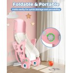Tobogan pentru copii Nichiduta Garden Dinosaur Pink, de interior/exterior cu mini-cos de Baschet si joc de precizie cu inele, prevazut cu scara, manere de sustinere, design pliabil, dimensiune 150 x 67.5 cm