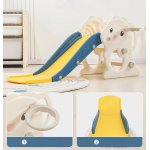 Tobogan pentru copii Nichiduta Garden Little Green Dragon, de interior/exterior, design pliabil, cu mini-cos de baschet, prevazut cu scara, manere de sustinere, dimensiune 38 x 115 x 54 cm
