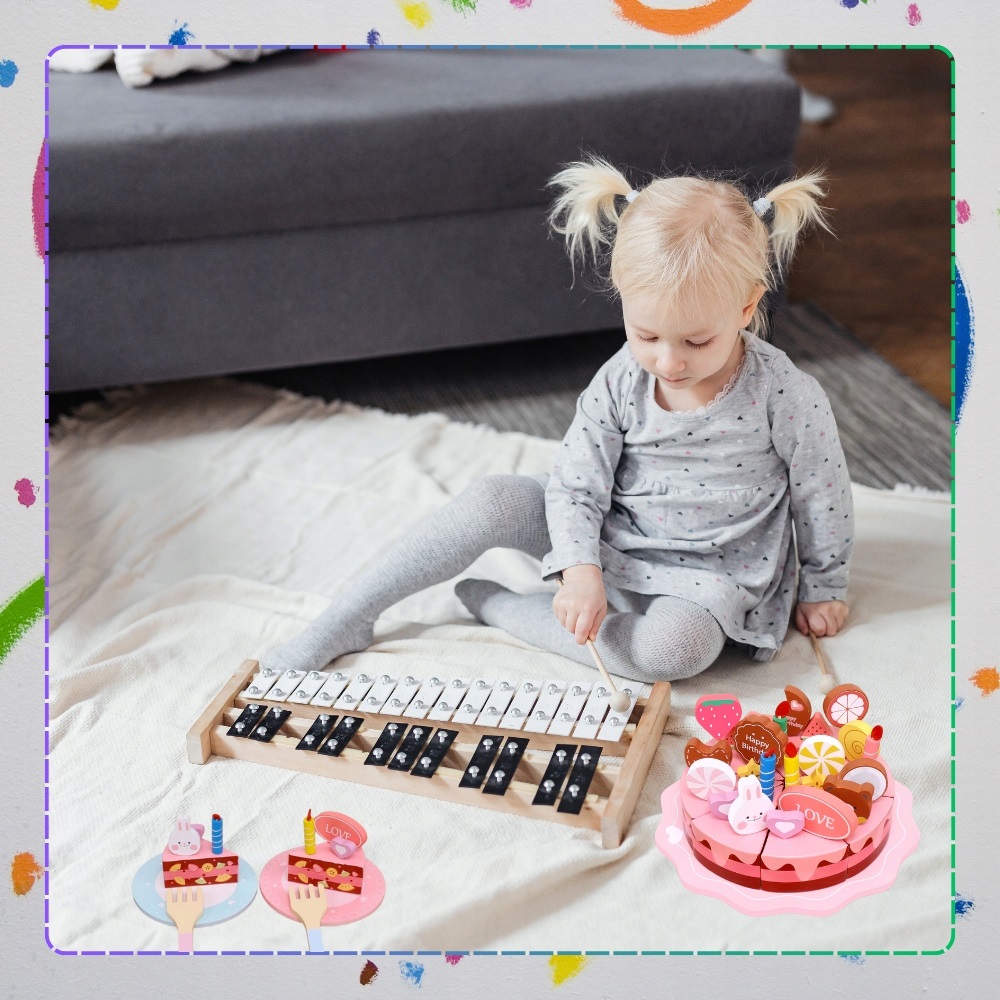 * Introduceti-va copilul intr-o lume de placeri dulci cu tortul nostru de jucarie din lemn care ofera ore intregi de distractie creativa!