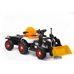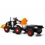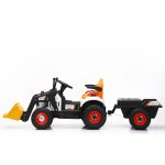 - Remorca detasabila: Tractorul este insotit de o remorca spatioasa, ideala pentru a transporta materiale de constructie, jucarii sau orice altceva doreste micul sofer. Remorca poate fi atasata si detasata cu usurinta, oferind flexibilitate in timpul jocului.