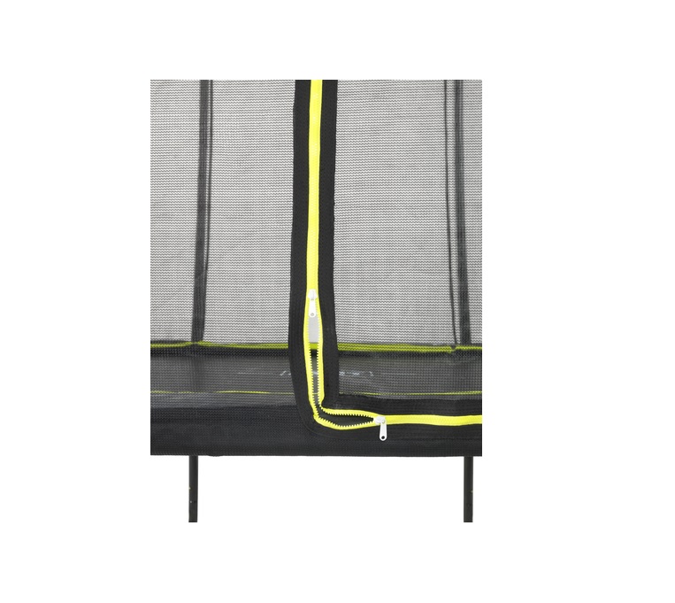 Un fermoar robust, incluzând o culoare verde contrastanta, închide intrarea în trambulină, astfel încât o cădere neașteptată nu duce la o aterizare tare în afara covorului de sărituri!