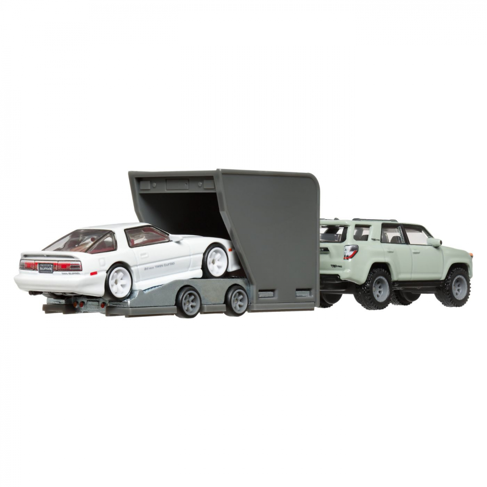 Setul contine transporterul Toyota 4Runner si masinuta Toyota Supra.