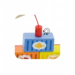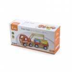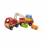 Acest frumos camion cu macara din lemn contine patru containere care pot fi ridicate cu ajutorul bratului magnetic.