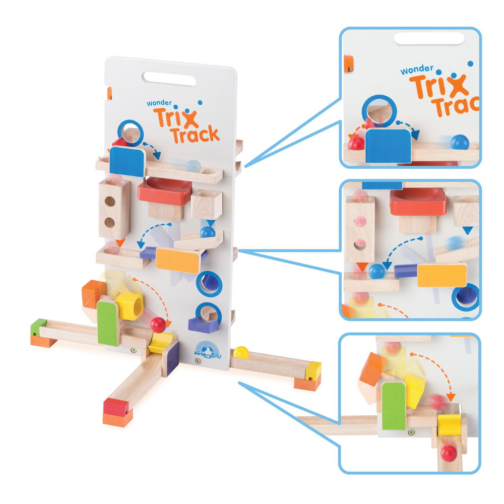• Toate elementele acestei jucarii se poate combina cu alte seturi din gama Wonder Trix Track, ale producatorului Wonderworld, pentru a crea trasee mai mari, mai interesante si mai provocatoare, ce vor asigura distractie nelimitata.