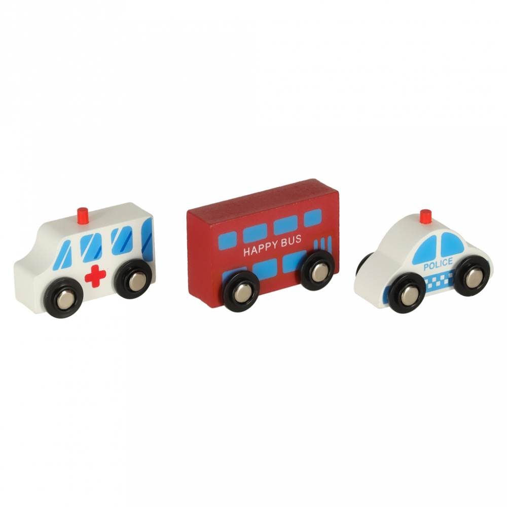 Vehicule (ambulanta, masina de politie, autobuz, tren cu 2 vagoane)