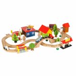 Acest set de tren din lemn este o jucarie excelenta pentru copiii cu varsta de 3 ani si peste.