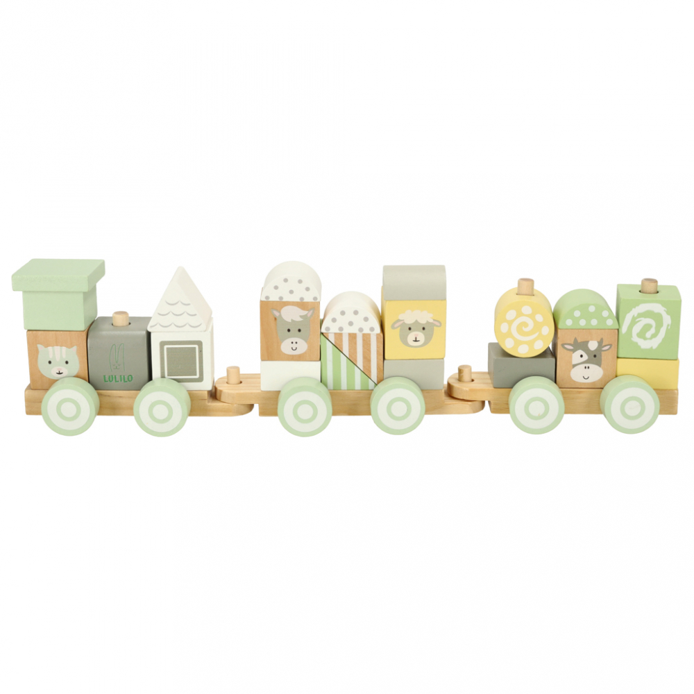 Trenulet din lemn pentru copii, cu blocuri de construit, dimensiune 39 x 7.5 x 10 cm