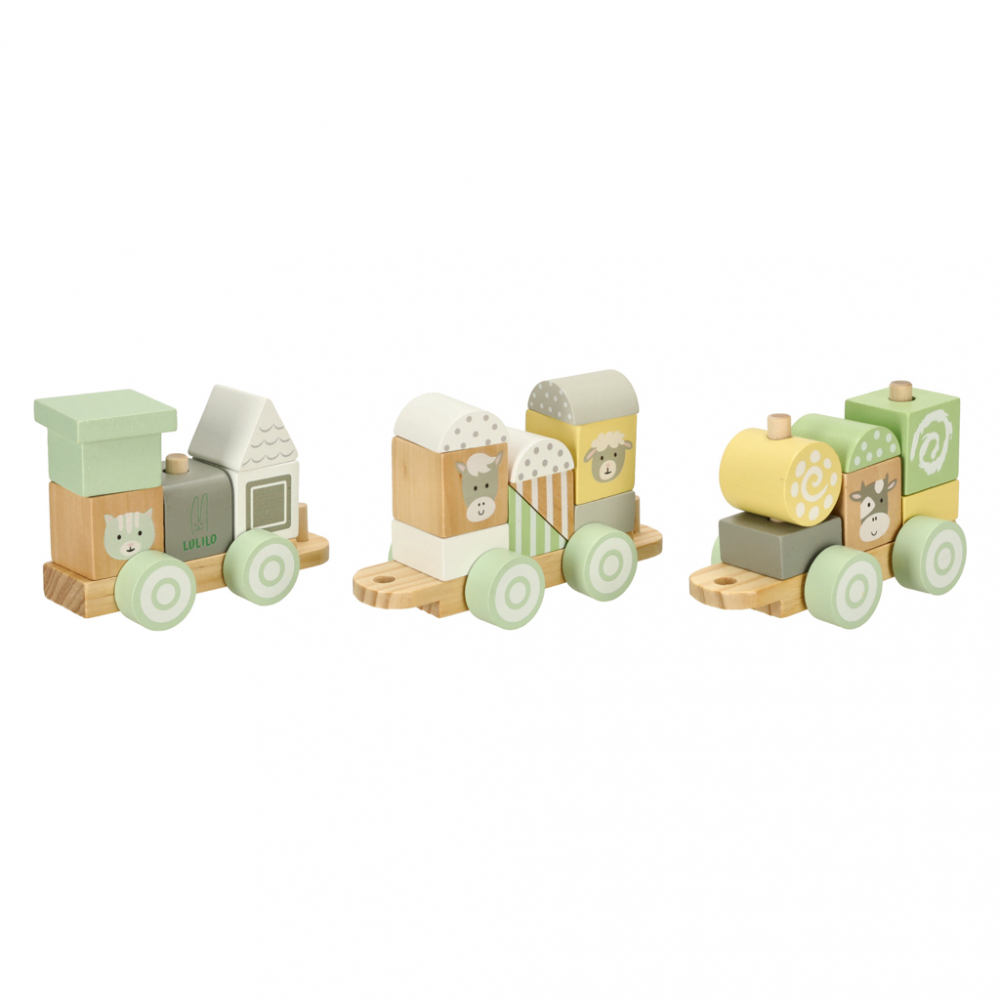Acest set de tren din lemn, format din trei vagoane, ofera o experienta de joc variata si creativa.