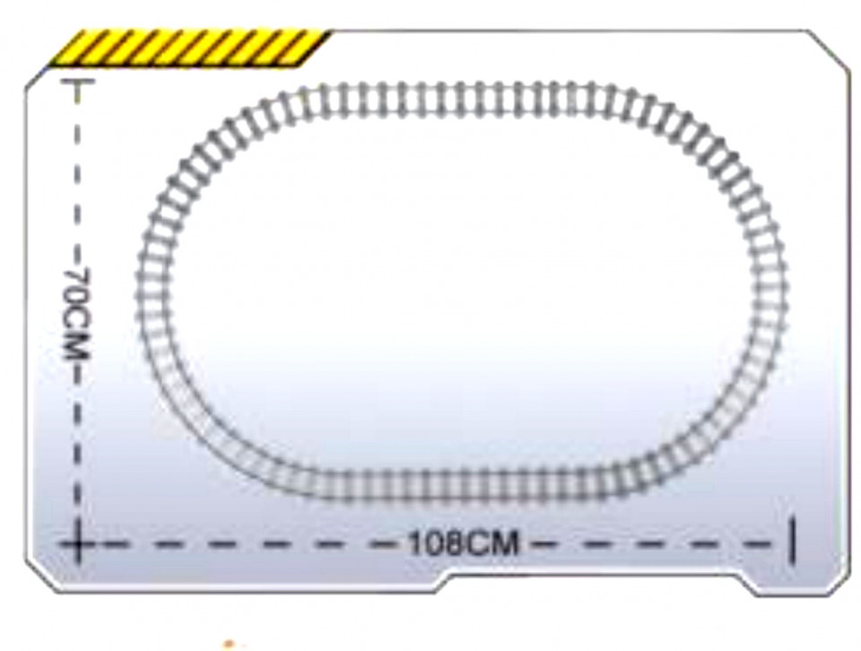 Sina pentru tren este inclusă în pachet. După asamblare, traseul este în forma de oval cu lungimea de 108 cm, si latimea de 70 cm.