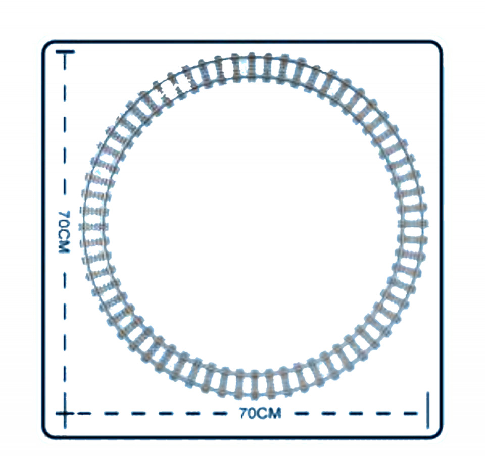 Sina pentru tren este inclusă în pachet. După asamblare, traseul este în forma de cerc cu diamentrul de 70 cm.