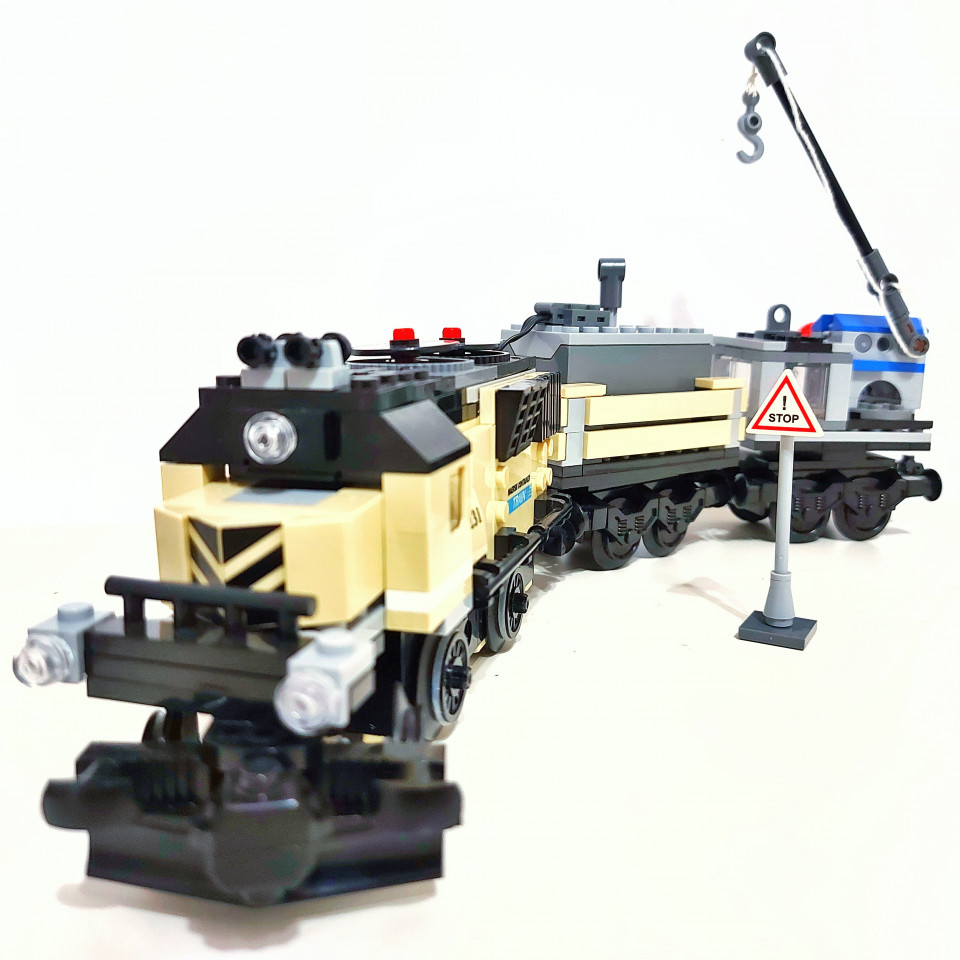 Trenulet electric galben pentru marfa Arlo din piese de constructie