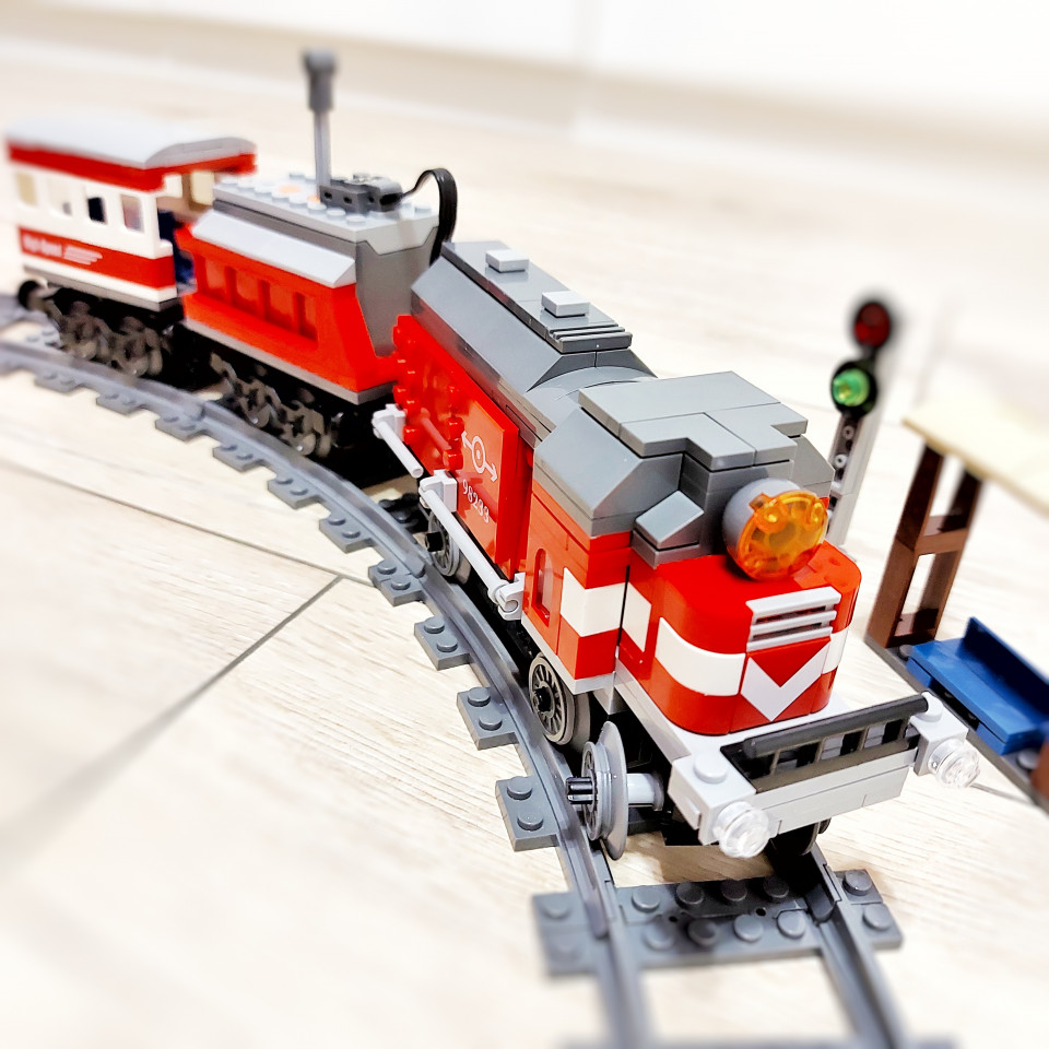 Această jucărie distractivă ce constă într-un trenuleț electric din piese de construcție tip lego are un motor cu 7 trepte de viteză care este acționat de baterii. Motorul este pornit si oprit prin apăsarea butonului orange de pe partea superioara a acestuia si poate fi acționat atat pe direcția inainte, prin 7 trepte de viteza, cat si pe direcția înapoi, tot prin 7 trepte de viteză prin învârtirea unei manete poziționată în partea de sus a motorului.