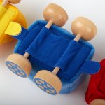 Elefantul, girafa si leul pot fi scosi din vagoane si ofera multe optiuni de joaca chiar inainte de prima aniversare, datorita zornaitorii si jucariei care scartaie.