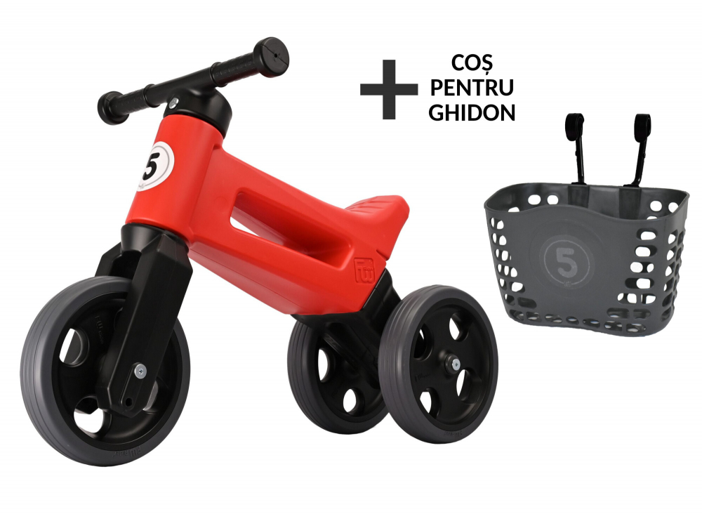 Tricicleta copii fara pedale 2 in 1 cu cosulet pentru ghidon Funny Wheels Rider Sport Rosu, inaltime scaun 27-29 cm, raza de viraj limitata, de la 18 luni, greutate maxima admisa 25 Kg
