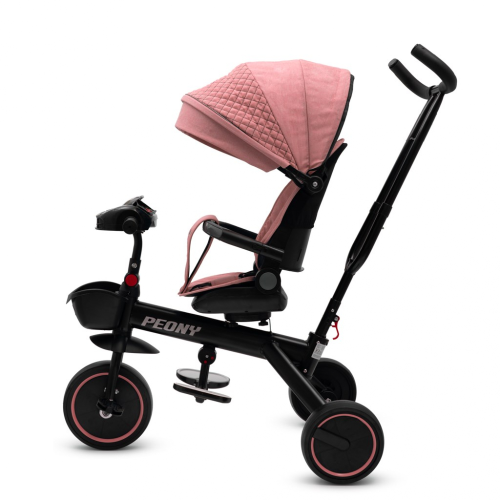 Tricicleta pentru copii Baby Mix Peony Pink cu scaun rotativ 360,roti EVA cu frana,spatar reglabil,maner parental cu control al directiei,suport picioare pliabil,copertina reglabila ,panou cu muzica,lumini,ghidon pliabil