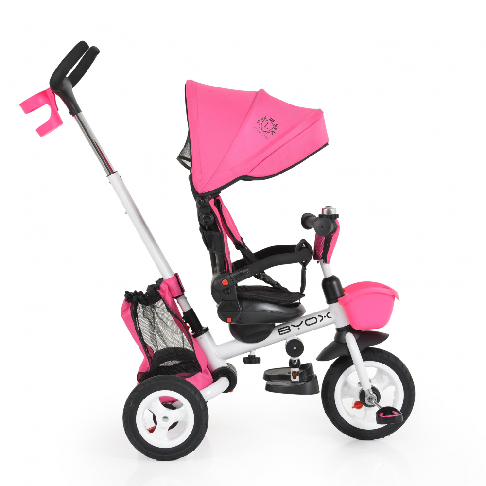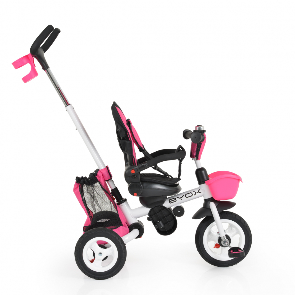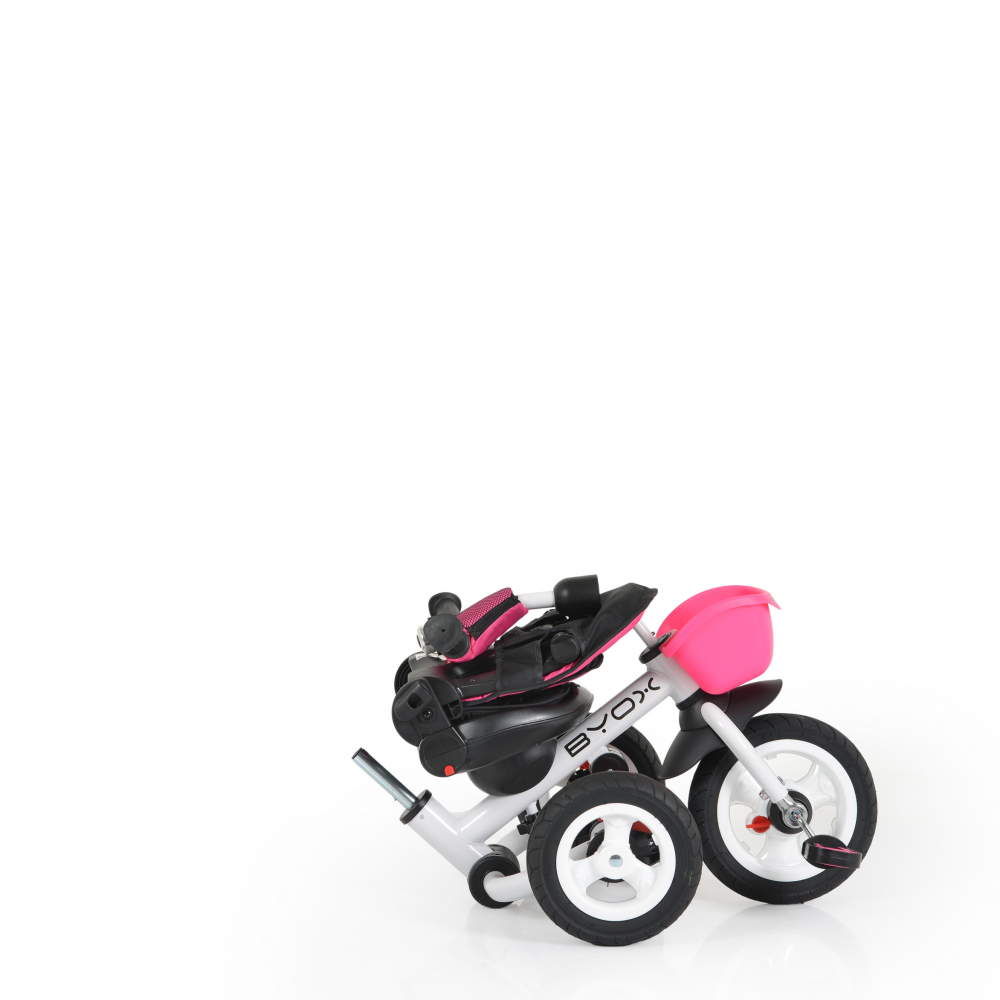 Tricicleta pentru copii Byox Flexy Lux Pink, pliabila cu maner parental si sezut reversibil, spatar reglabil, frana,suport pahar si roti din cauciuc