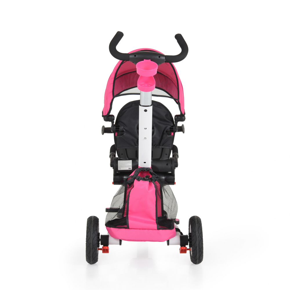 Tricicleta cu cadru metalic si roti rezistente cu caracteristici de carucior. Scaun reversibil, astfel, copilul poate calatori atat cu fata, cat si cu spatele catre parinte in conditii de confort absolut.