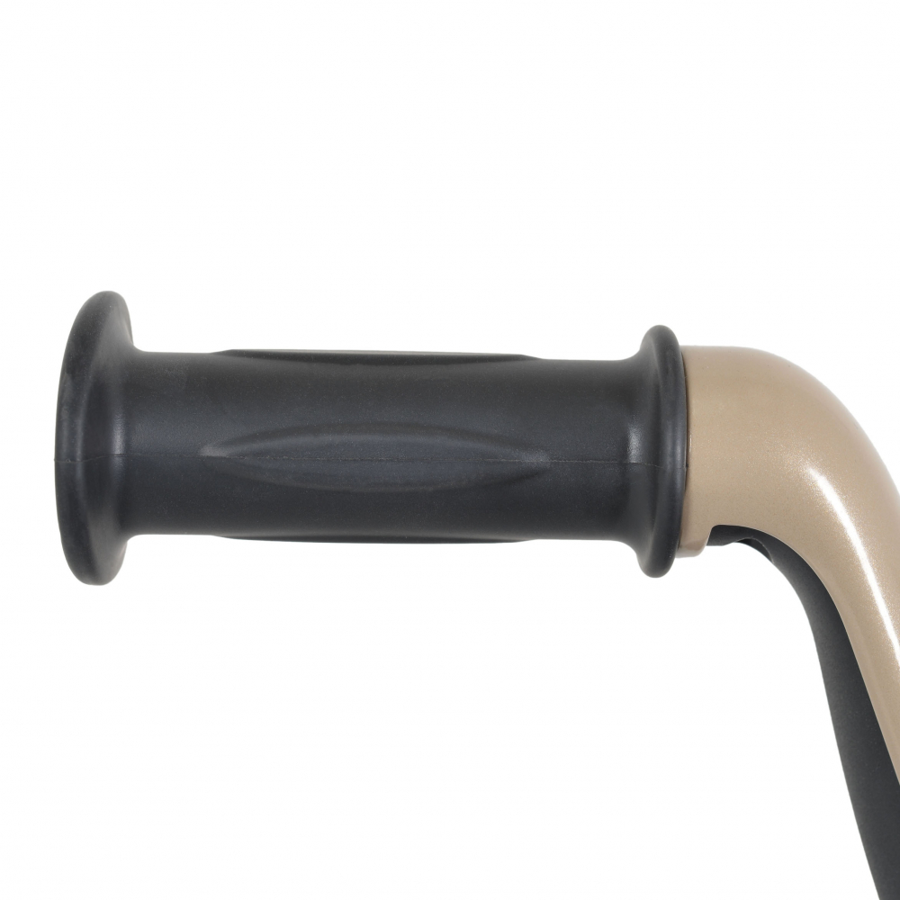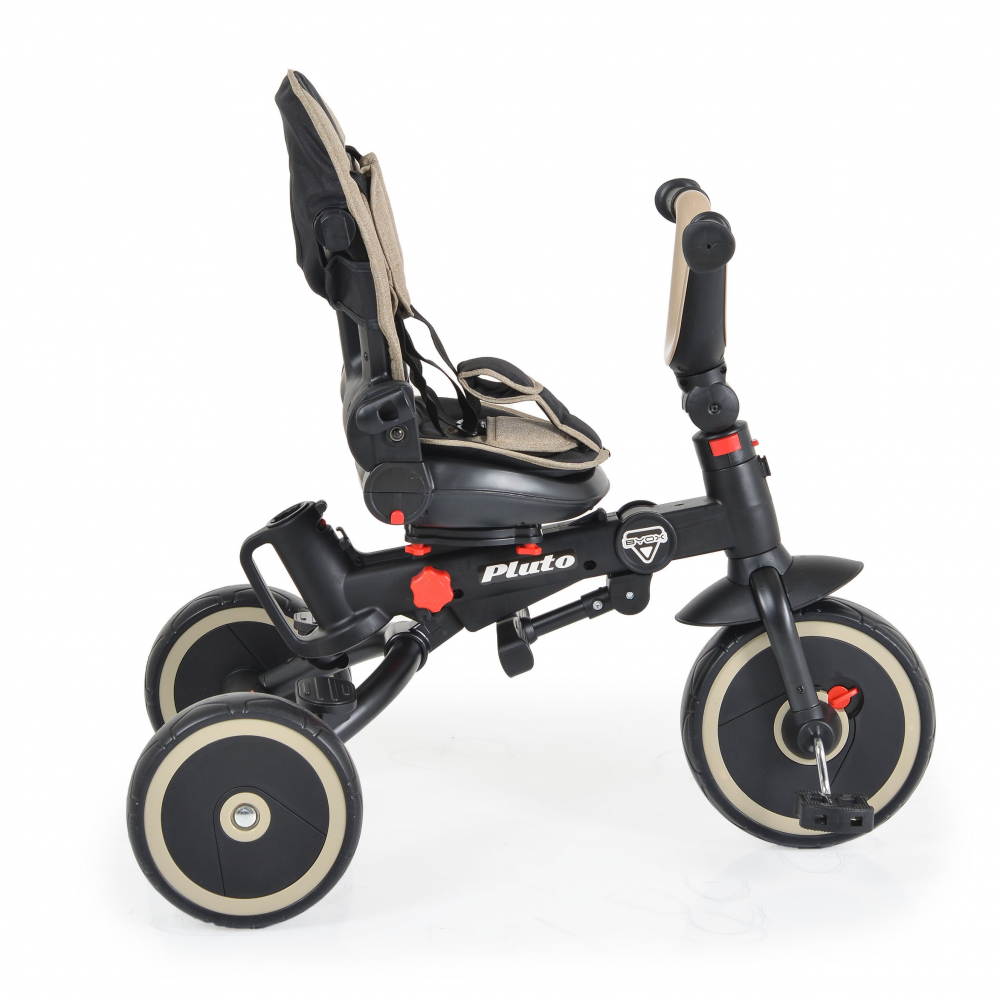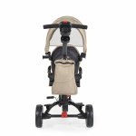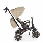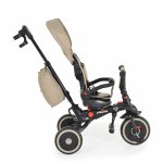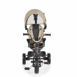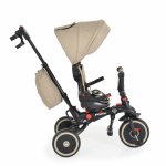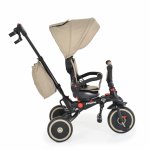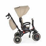 Tricicleta pentru copii Byox Pluto Beige pliabila, cu scaun rotativ si spatar reglabil, roti din cauciuc Eva, maner cu control al directiei, 2 seturi suport picioruse, sistem roata libera si frana pe rotile din spate