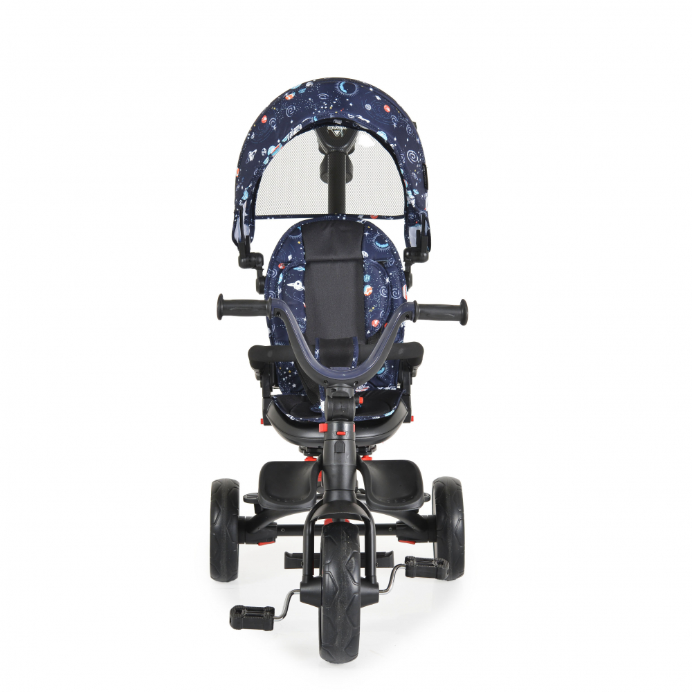 Poate fi folosita fara copertina, manerul de control parental si panoul de siguranta atunci cand copilul este suficient de mare,tranformandu-se intr-o tricicleta clasica.