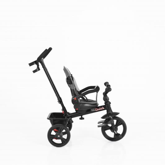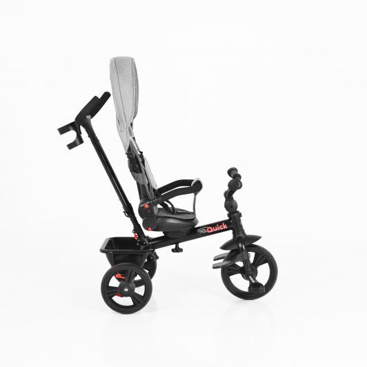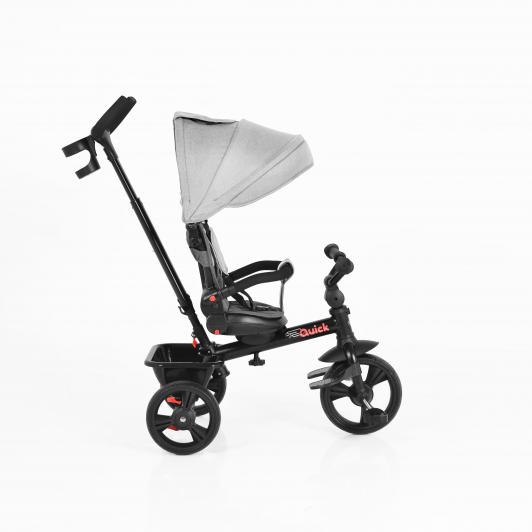 Tricicleta Quick este potrivita pentru copii cu varsta peste 18luni si cu o greutate maxima de pana la 25 kg.Dotata cu sezut cu rotatie 360 de grade pentru a-l putea folosi in pozitia dorita inca din primele clipe.