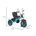 Tricicleta pentru copii Byox Retro Blue cu far luminos, oglinzi, cos, roti din cauciuc Eva, scaun reglabil, de la 3 ani pana la 25 kg