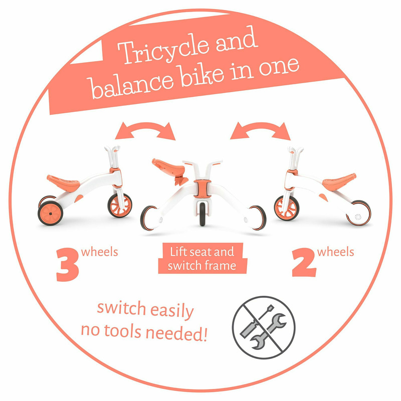 Comutati cu usurinta intre modul tricicleta cu 3 roti si modul de echilibru cu 2 roti fara unelte atunci cand copilul este gata - cel mai bun mod de a va invata copilul echilibrul in ritmul sau.