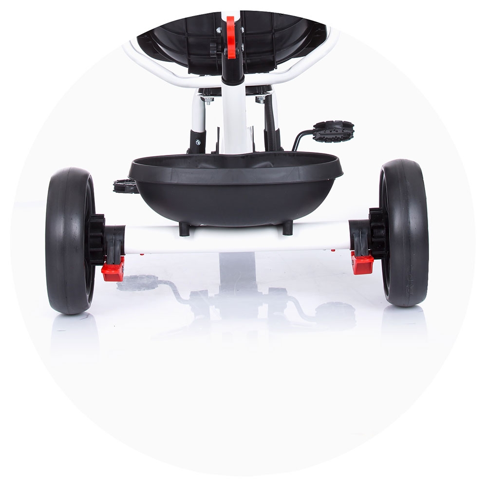 * Tricicleta poate fi pusa in miscare de catre copil cu ajutorul pedalelor sau de catre parinte cu ajutorul manerului de dirijare