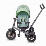Tricicleta pentru copii Coccolle Pianti Mint Green multifunctionala, cu roti din cauciuc gonflabil, sezut moale si ajustabil cu sistem de rotire 360 grade, 2 tipuri de suporti de picioare si saculet jucarii
