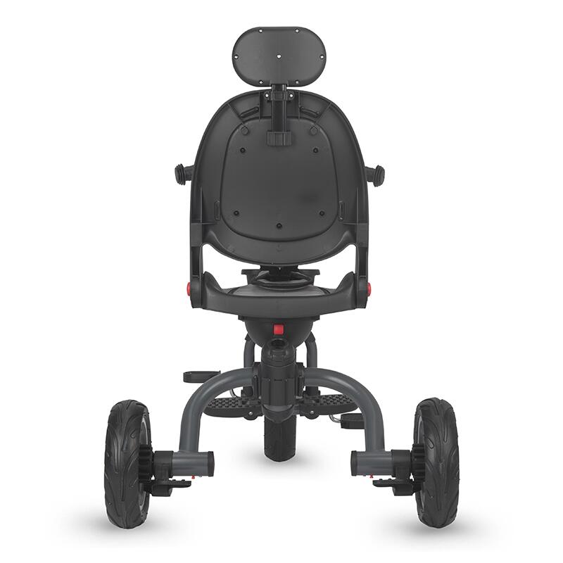 Pentru avantajul parintilor, tija auxiliara este telescopica astfel ca efortul la impingere este minimal. Cu ajutorul spatiilor de depozitare inteligente, fiecare jucarie a celui mic si device necesar adultilor isi gaseste locul pe acest produs. Tricicleta beneficiaza de toate masurile de siguranta putand fi utilizata in intervalul de varsta 1-5 ani (centura de siguranta, sezut si spatar matlasat, inel de siguranta). Pentru a economisi spatiu atat la depozitare, cat si la transport, cadrul tricicletei se pliaza.